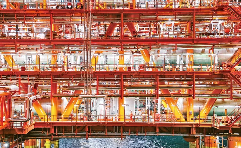 近年來(lái),我國(guó)堅(jiān)持創(chuàng)新引領(lǐng),加快發(fā)展新質(zhì)生產(chǎn)力,重大工程科技含量持續(xù)攀升。2023年11月14日,中國(guó)海油宣布我國(guó)渤海首個(gè)千億方大氣田——渤中19—6氣田Ⅰ期開(kāi)發(fā)項(xiàng)目成功投產(chǎn),標(biāo)志著我國(guó)海上深層復(fù)雜潛山油氣藏開(kāi)發(fā)邁入新階段。圖為工作人員在渤中19—6氣田作業(yè)。 新華社發(fā) 杜鵬輝/攝