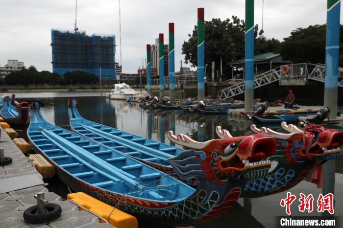 端午將至,穿過臺北市區(qū)的基隆河上,三腳渡碼頭平日擺放的龍舟使用頻率明顯升高,許多團(tuán)隊利用周日加緊操槳練習(xí)。
