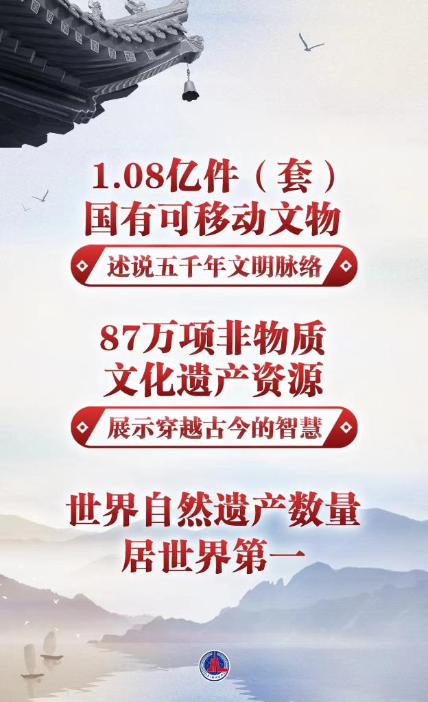 1.08億件(套)國有可移動文物述說五千年文明脈絡(luò),87萬項非物質(zhì)文化遺產(chǎn)資源展示穿越古今的智慧,世界自然遺產(chǎn)數(shù)量居世界第一……文化和自然遺產(chǎn)濃縮著中華文明發(fā)展和自然演進的珍貴成果。