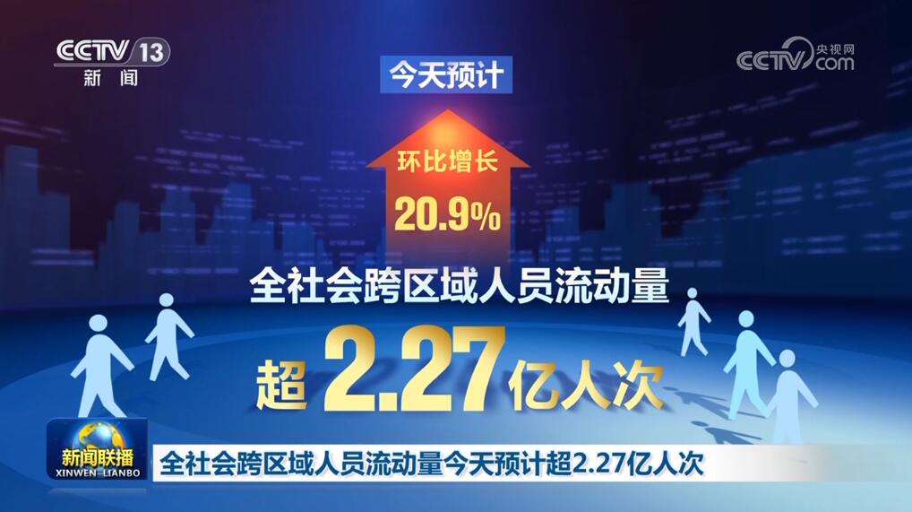 全社會跨區(qū)域人員流動量8日預(yù)計(jì)超2.27億人次