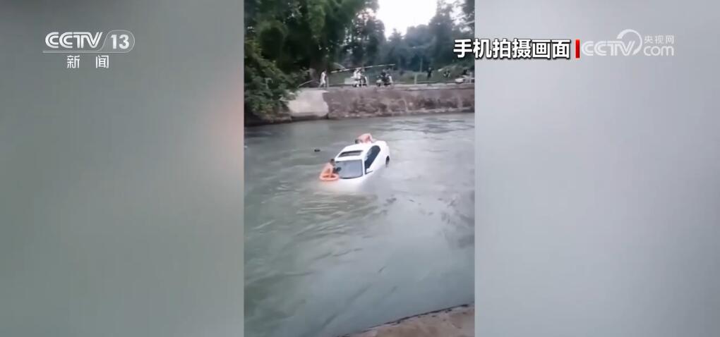 近日,在四川成都的一處河道,一輛轎車意外墜入湍急的河水中,車內(nèi)有一名男子。危急時刻,附近工作人員和群眾合力展開救援。