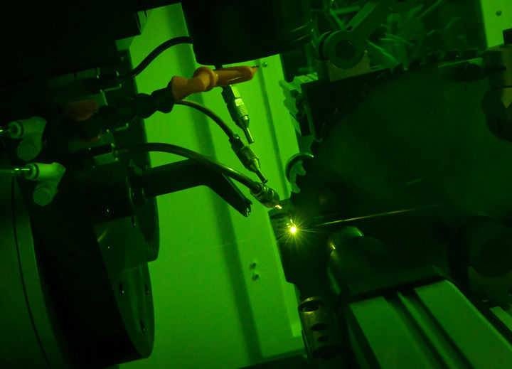 這是在位于廣東省佛山市的原點智能技術(shù)有限公司車間拍攝的數(shù)控機床激光雕刻作業(yè)現(xiàn)場(5月16日攝)。新華社記者 李任滋 攝
