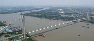 江蘇南京,仙新路過江通道主橋建設(shè)中,創(chuàng)新應(yīng)用中建五洲研發(fā)的抗疲勞正交異性鋼橋面板,試驗(yàn)結(jié)果顯示橋梁的使用壽命提高72%以上。
