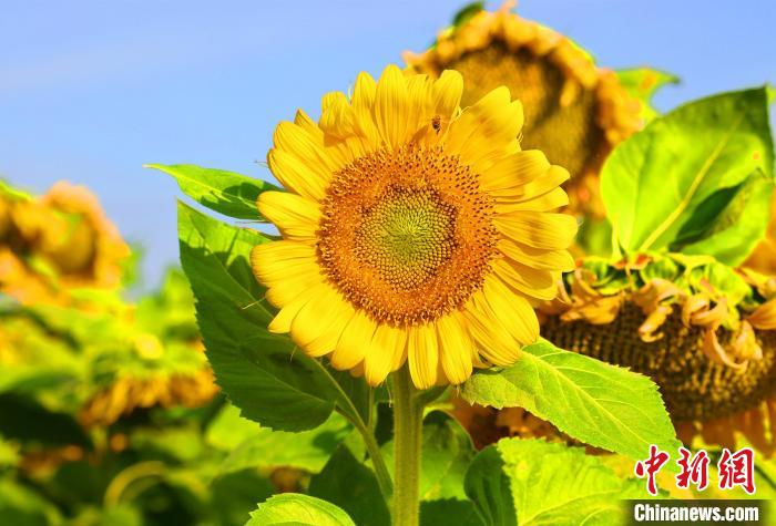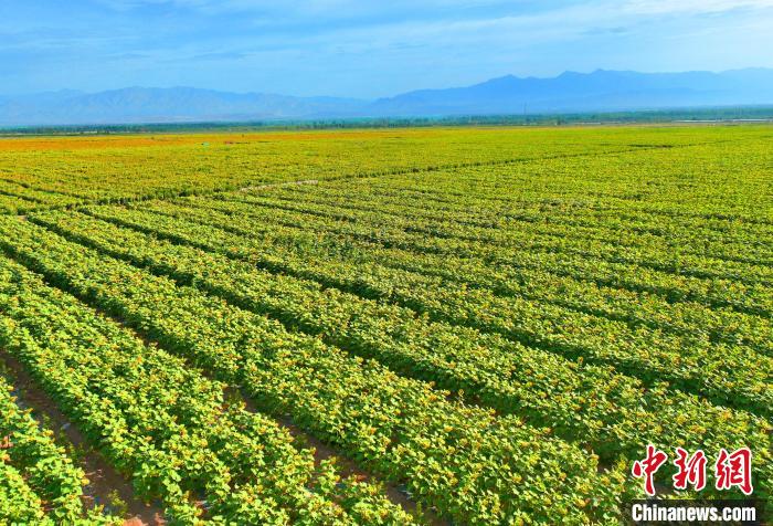 7月2日,走進(jìn)新疆鐵門(mén)關(guān)市二十一團(tuán),一眼望不到邊的向日葵正大面積綻放,構(gòu)成一幅美麗的壯觀畫(huà)卷。白克斌 攝