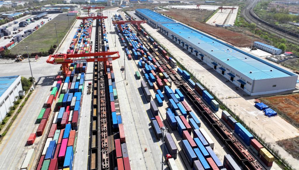 這是2024年4月15日拍攝的位于山東省青島市的上合示范區(qū)多式聯(lián)運中心(無人機照片)。圖片來源:新華社