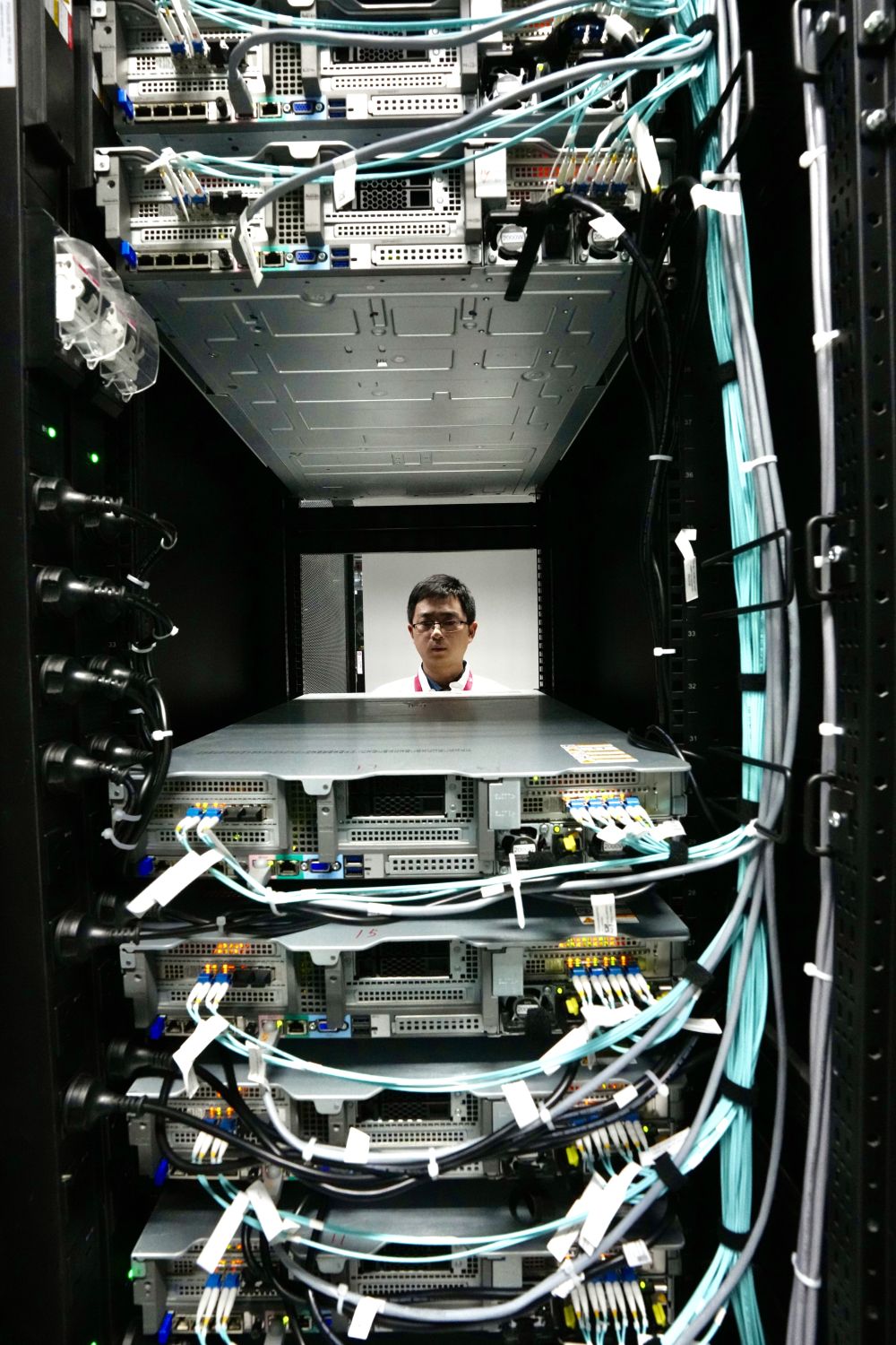 2月27日,克拉瑪依云計算產業(yè)園區(qū)華為云服務數(shù)據(jù)中心,技術人員正在巡查。新華社發(fā)(崔文娟 攝)