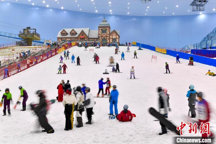 2024年1月14日,廣東省廣州市,民眾在熱雪奇跡室內(nèi)滑雪場練習(xí)滑雪,感受冰雪運(yùn)動(dòng)的魅力。 記者 陳驥旻 攝