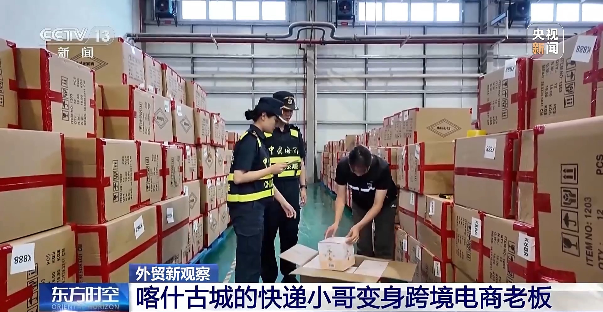 張琪和同事們的主要任務就是要將這些來自全國各地的貨物從新疆喀什發(fā)往中亞、歐洲等地。2020年張琪在喀什綜合保稅區(qū)創(chuàng)立了這家電子商務公司,并開創(chuàng)了南疆地區(qū)跨境電商出口零的突破。而在此之前,張琪是物流企業(yè)的一名快遞小哥。
