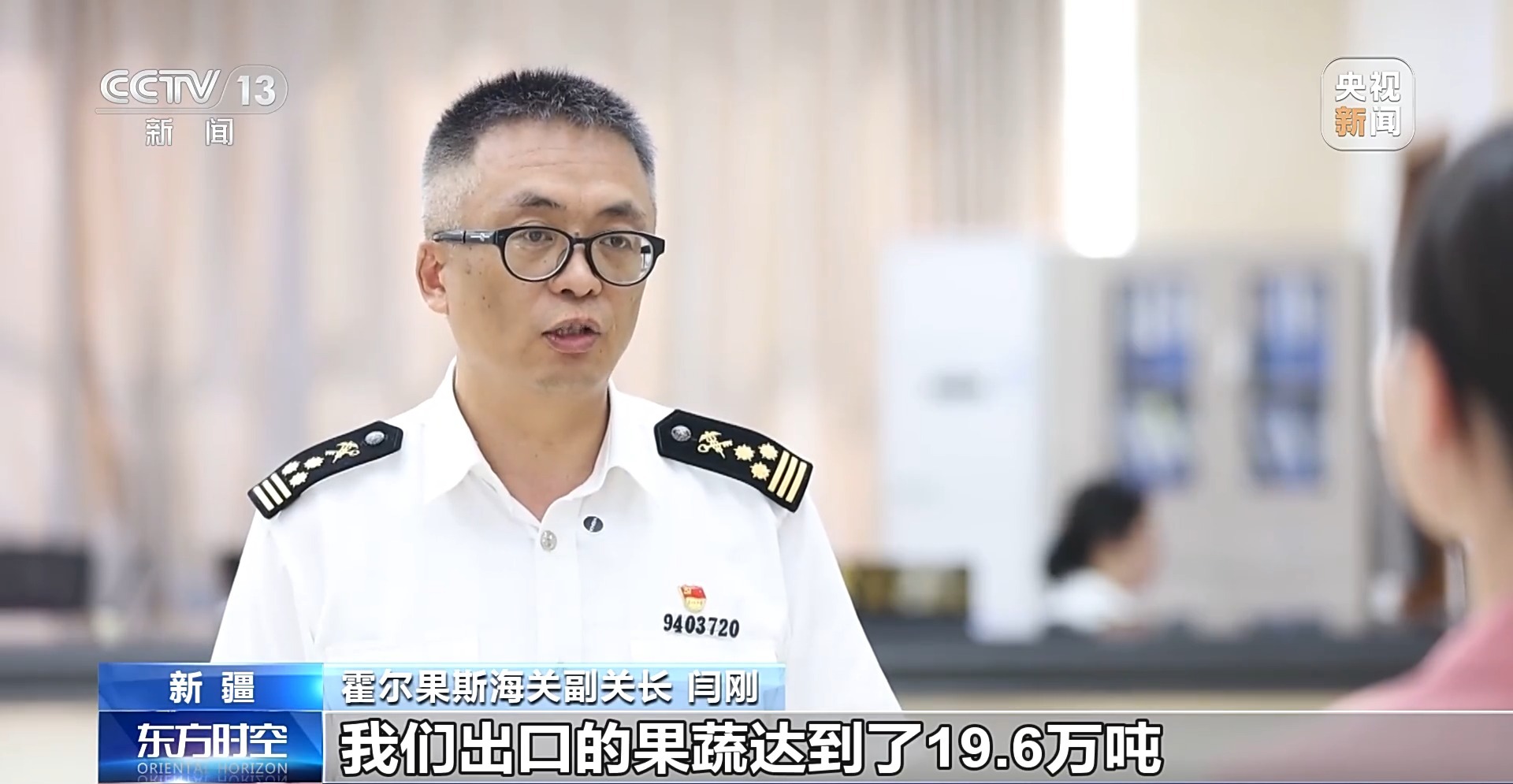 霍爾果斯海關副關長 閆剛:果蔬出口一直是我們口岸的一大特色和亮點,2023年全年我們出口的果蔬達到了19.6萬噸,今年1—6月份,我們出口的果蔬就達到了20萬噸,就是說我們今年上半年已經完成了去年全年的量,這說明“提前申報+口岸直通”的通關模式,對果蔬出口,對企業(yè)減少成本有巨大的推進作用。