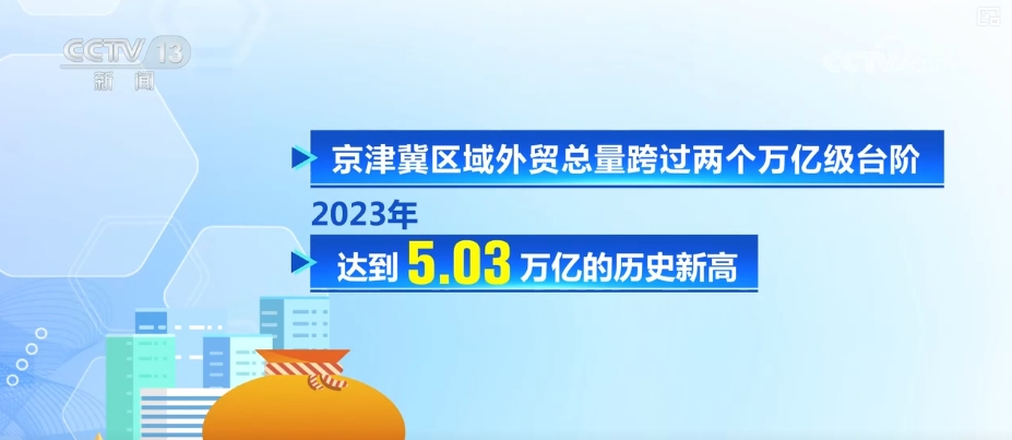 京津冀區(qū)域外貿(mào)總量跨過兩個萬億級臺階,2023年達(dá)到5.03萬億元的歷史新高。