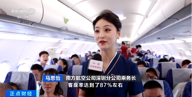 南方航空公司深圳分公司乘務(wù)長 馬思怡:今天深圳-銀川-阿勒泰航線的航班客座率達(dá)到了87%左右。新開這個航線,為去阿勒泰旅行的旅客提供了便利,也省去了中轉(zhuǎn)的麻煩。