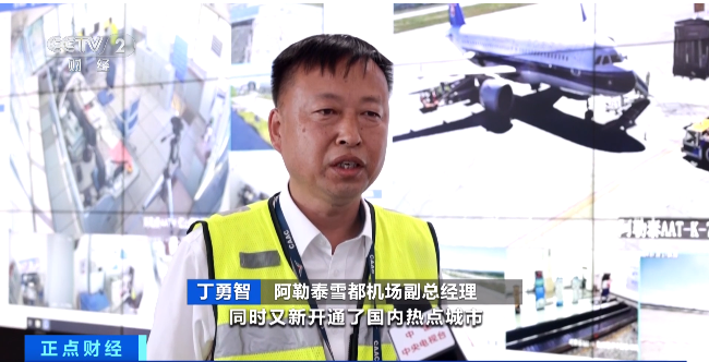 阿勒泰雪都機(jī)場副總經(jīng)理 丁勇智:原有的航線大部分進(jìn)行了加密,同時又新開通了國內(nèi)熱點(diǎn)城市直飛阿勒泰的航線,選擇性靈活度更高了,促使今年來的游客更多了,與去年相比增長了35%左右。