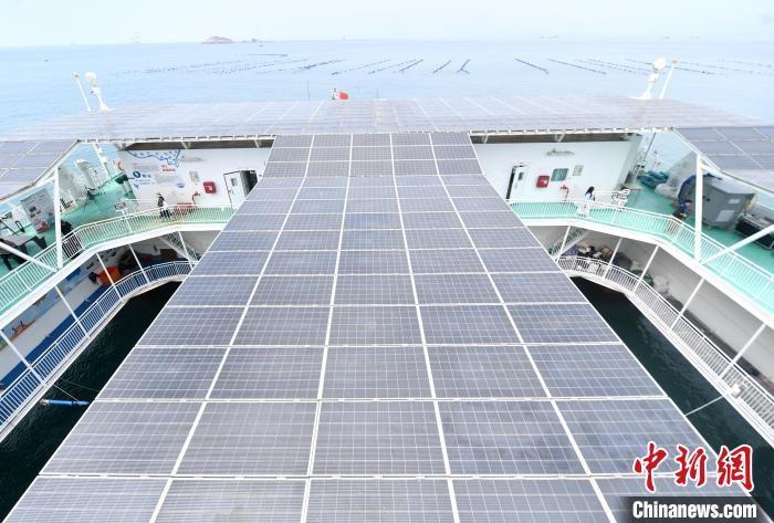 圖為平臺上配備的光伏電板,實(shí)現(xiàn)平臺綠色低碳可持續(xù)發(fā)展。中新社記者 呂明 攝
