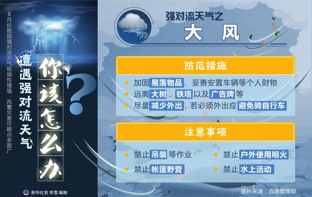 從應(yīng)急管理部獲悉,多方會商研判認(rèn)為,8月份中國強(qiáng)對流天氣極端性增強(qiáng),風(fēng)雹災(zāi)害可能點多面廣。遭遇強(qiáng)對流天氣,你該怎么辦?