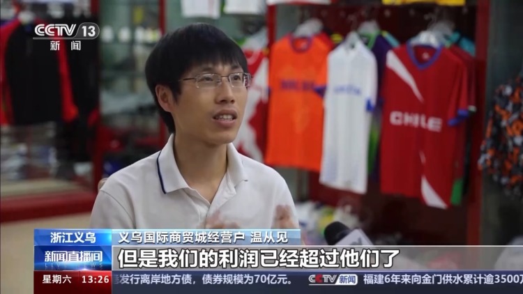 義烏國際商貿(mào)城經(jīng)營戶 溫從見:我們以前做設(shè)計(jì)的時候,比如說我們做法國隊(duì)的球衣,可能只設(shè)置了一兩個,現(xiàn)在我們做一個款式,我們會設(shè)置4到5個方案,包括我們自己也會先去試賣,讓自己的產(chǎn)品做得更加多元化,更加亮麗一點(diǎn),能夠在這輪流量過來的時候,能夠吸引來我店里他可以駐足的時間長一點(diǎn),我們這個訂單的概率會大一點(diǎn)。