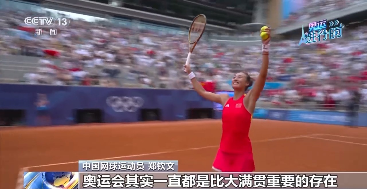 中國(guó)網(wǎng)球運(yùn)動(dòng)員 鄭欽文:對(duì)我還有我的家人來(lái)說(shuō),奧運(yùn)會(huì)其實(shí)一直都是比大滿(mǎn)貫重要的存在。因?yàn)樵谖覀冃闹?,?guó)家的榮譽(yù)永遠(yuǎn)是要超過(guò)個(gè)人的榮譽(yù)。