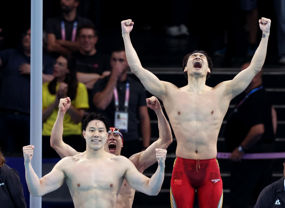 巴黎奧運(yùn)會(huì)游泳賽場(chǎng)最后一個(gè)比賽日,男子4X100米混合泳接力決賽,當(dāng)潘展樂完成反超,幫助中國(guó)隊(duì)力壓壟斷該項(xiàng)目40年的美國(guó)隊(duì)和占盡主場(chǎng)優(yōu)勢(shì)的法國(guó)隊(duì),以3分27秒46的成績(jī)奪冠時(shí),現(xiàn)場(chǎng)的歡呼聲達(dá)到了頂峰。