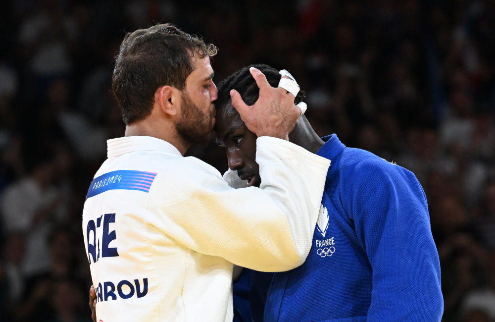 精疲力盡的兩人在賽后緊緊相擁,贏得金牌的海達(dá)羅夫親吻了本杰明的額頭,表示敬意。