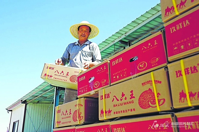 8月5日,位于伽師縣臥里托格拉克鎮(zhèn)的新疆果品(伽師)批發(fā)交易市場,工人在裝運伽師瓜,準備運往疆外。便捷的交通,讓當?shù)剞r(nóng)產(chǎn)品快速發(fā)往全國。 石榴云/新疆日報記者何新社攝