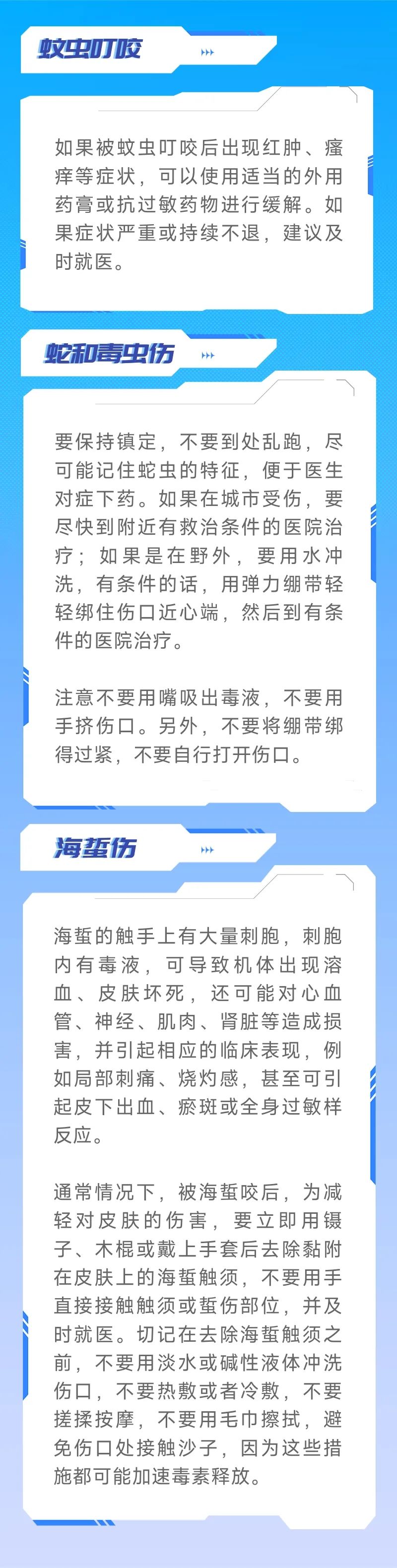 親近大自然,在森林、草原,以及海邊等地游玩,常有蚊蟲、蛇類等出沒。如因叮咬致傷,有的問題看起來不嚴(yán)重,但是會(huì)影響我們在出游時(shí)的舒適感和心情,極端情況還會(huì)危及生命。