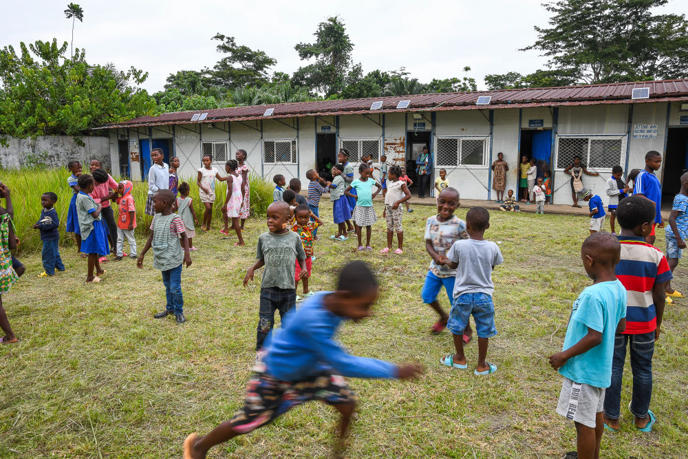 太陽升起,陽光灑在幾內(nèi)亞灣畔的喀麥隆克里比深水港。在距港口約25公里的恩杜馬萊村,10歲的布賴恩·芒格來到村里的小學(xué)參加暑期課外活動(dòng)。
