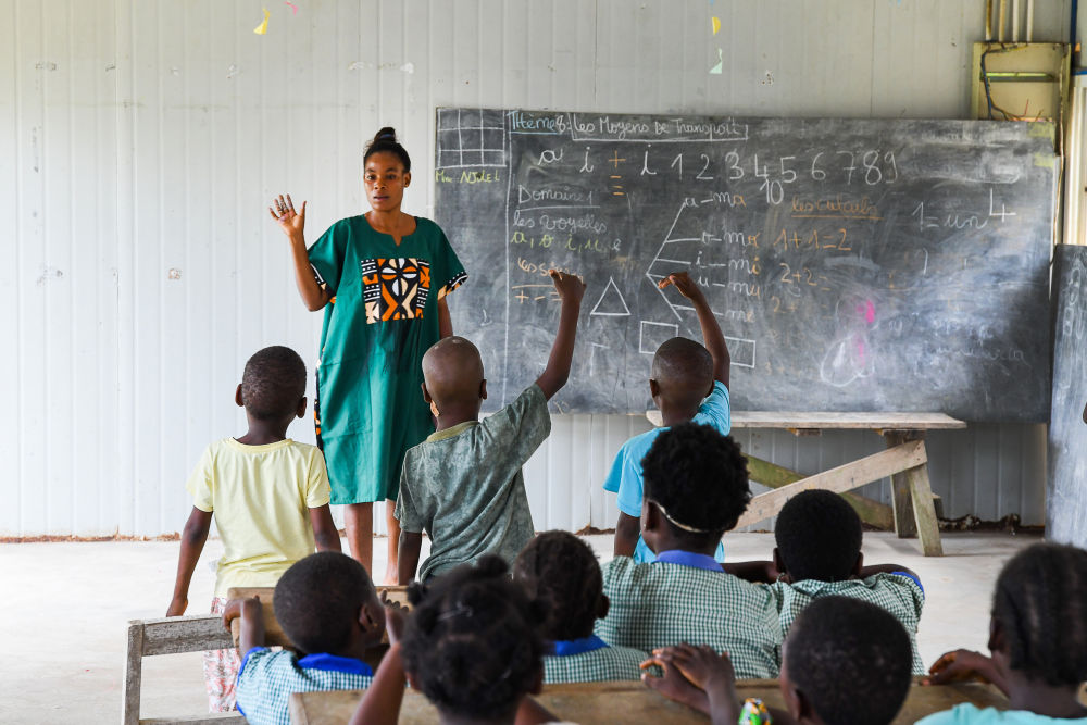 7月10日,在喀麥隆南部大區(qū)克里比市,老師和學(xué)生參加恩杜馬萊雙語學(xué)校暑期活動(dòng)。新華社發(fā)(科普索攝)