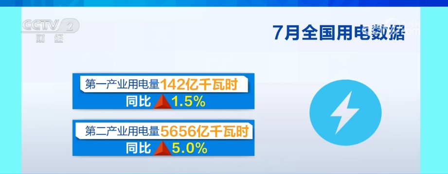 入夏以來,全國多地出現(xiàn)持續(xù)性高溫天氣,最大用電負(fù)荷快速攀升,電力供應(yīng)保障有力有效。7月份,全社會(huì)用電量9396億千瓦時(shí),同比增長5.7%。從分產(chǎn)業(yè)用電看,第一產(chǎn)業(yè)用電量142億千瓦時(shí),同比增長1.5%;第二產(chǎn)業(yè)用電量5656億千瓦時(shí),同比增長5.0%;第三產(chǎn)業(yè)用電量1871億千瓦時(shí),同比增長7.8%;城鄉(xiāng)居民生活用電量1727億千瓦時(shí),同比增長5.9%。