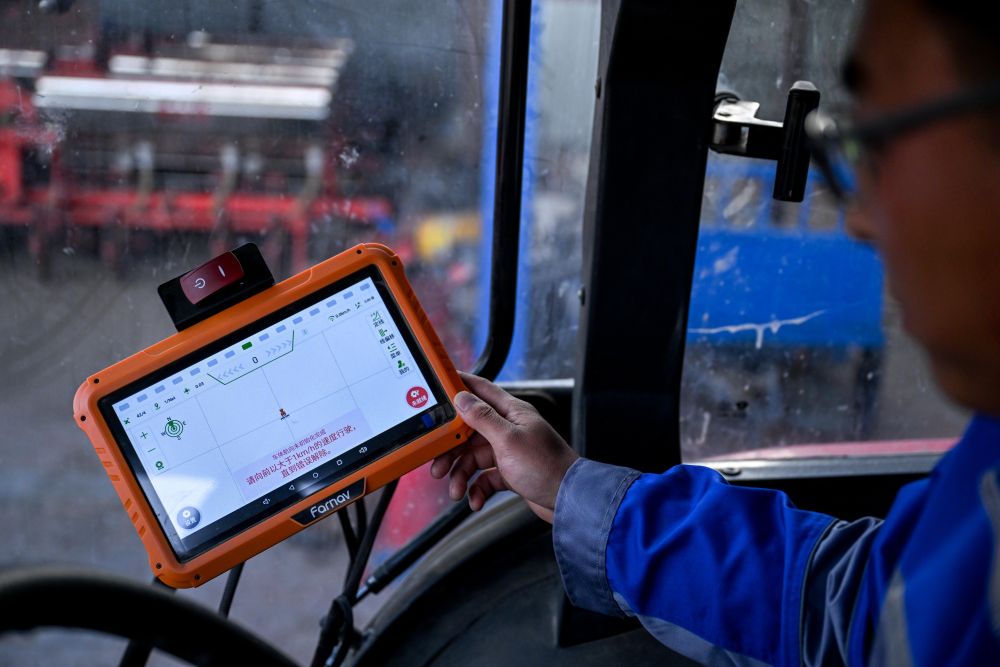 2024年3月13日,黑龍江北大荒(佳木斯)精準(zhǔn)農(nóng)業(yè)科技有限公司工作人員測(cè)試北斗自動(dòng)駕駛儀產(chǎn)品。