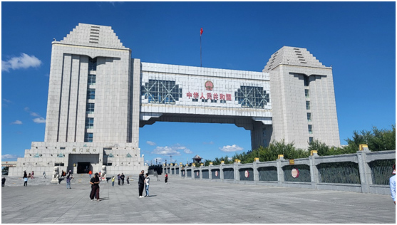 滿洲里口岸于1902年建成,在現(xiàn)國門處先后建設(shè)了四代國門,如今的國門建筑面積5905平方米,總長105米,寬46.6米,高43.7米,是我國邊境線上最大的國門,也是弘揚(yáng)國威、展現(xiàn)國力的標(biāo)志性建筑。
