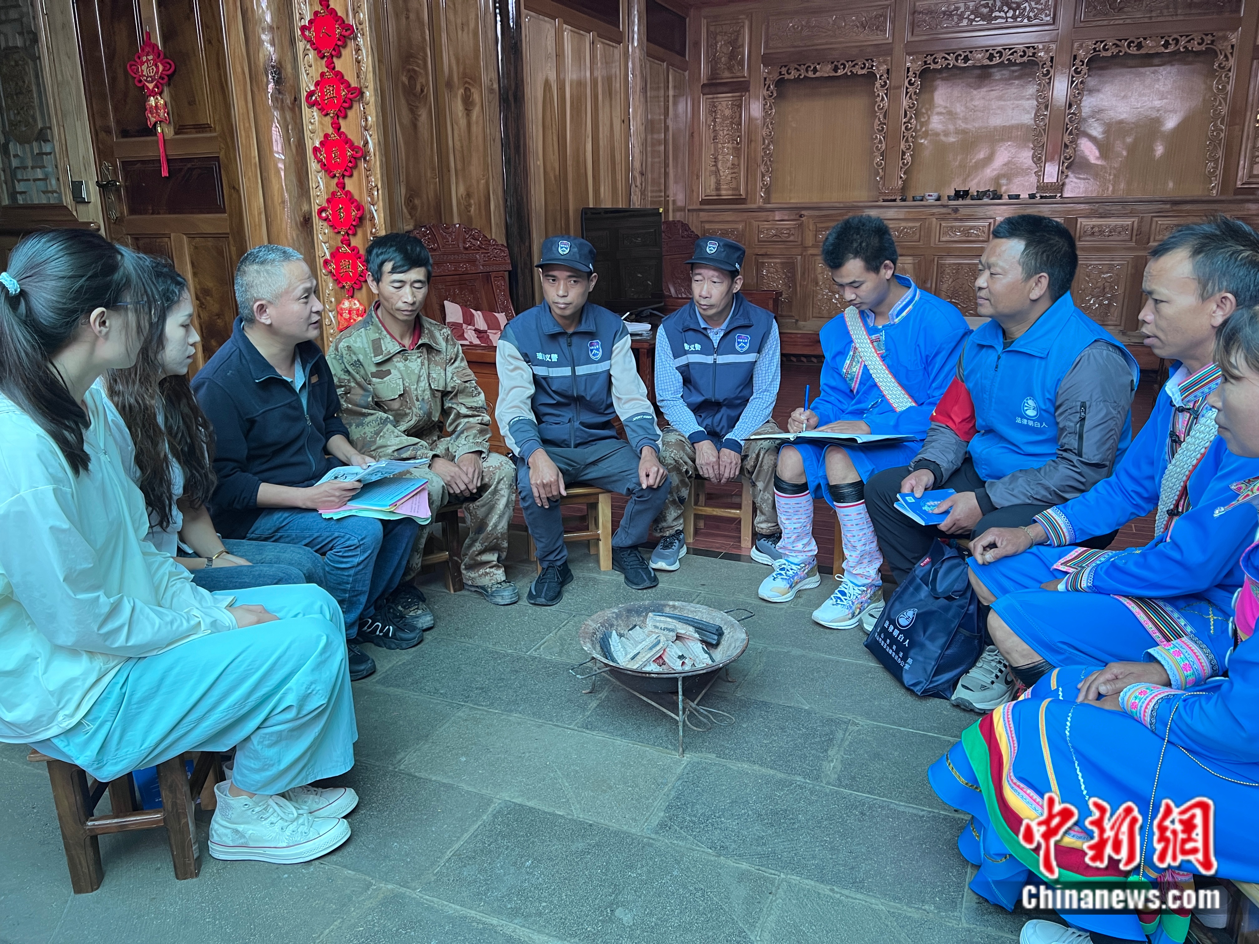 火塘?xí)?,村民學(xué)習(xí)普法知識(shí)。邵萌 攝