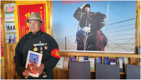 從石頭路走到柏油路,從騎駱駝、馬兒巡邊,到騎摩托車(chē)巡邊……圖門(mén)的護(hù)邊之路走了許多年,他把父輩們守邊護(hù)邊的精神一直傳承下去,他說(shuō):“作為一名共產(chǎn)黨員,作為一個(gè)黨組織信任的‘紅色堡壘戶(hù)’,我會(huì)守好邊疆安寧,守護(hù)好這片綠水青山,服務(wù)好家鄉(xiāng)廣大牧民群眾,帶領(lǐng)大家過(guò)上幸福生活!”