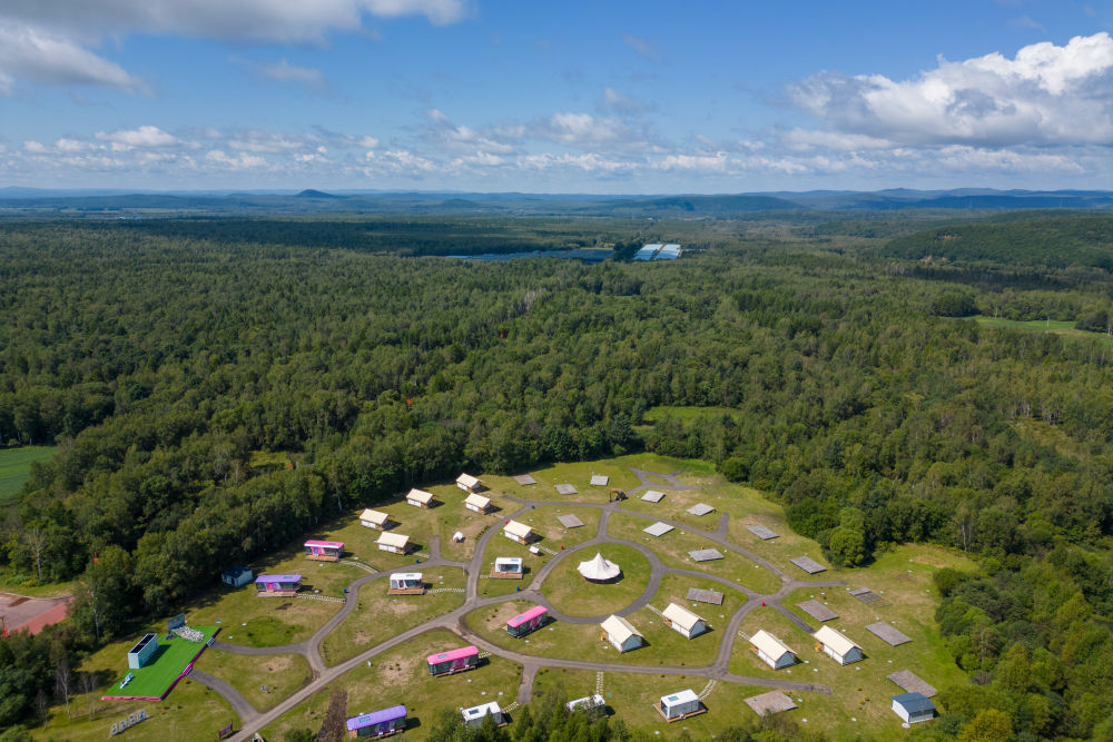 這是8月27日拍攝的黑龍江伊春森工集團(tuán)上甘嶺林業(yè)局公司溪水林場(chǎng)的溪水野奢帳篷度假酒店項(xiàng)目(無人機(jī)照片)。