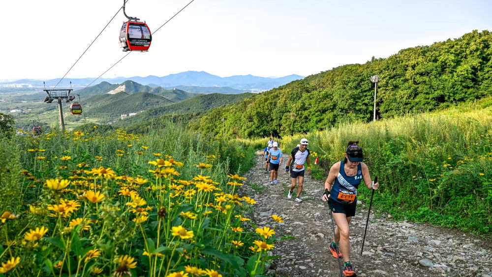 8月24日,越野跑愛好者在吉林市萬科松花湖度假區(qū)越野跑。