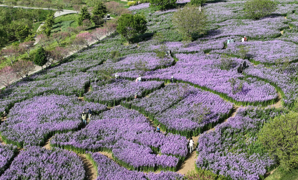 游客在遼寧大連英歌石植物園游覽(5月11日攝,無人機(jī)照片)。