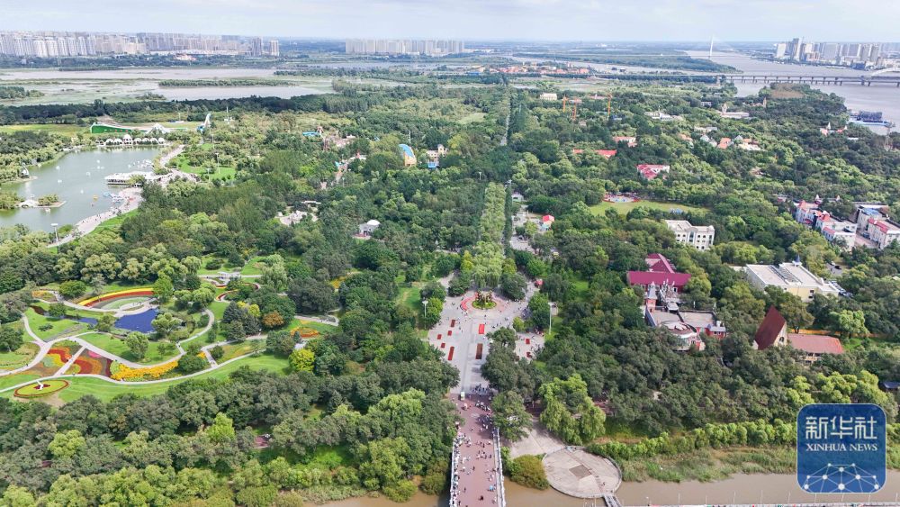 ↑這是哈爾濱太陽島國家濕地公園局部景色(8月20日攝,無人機(jī)照片)。