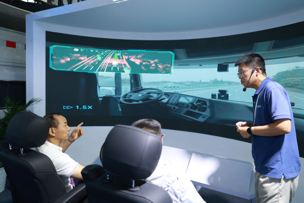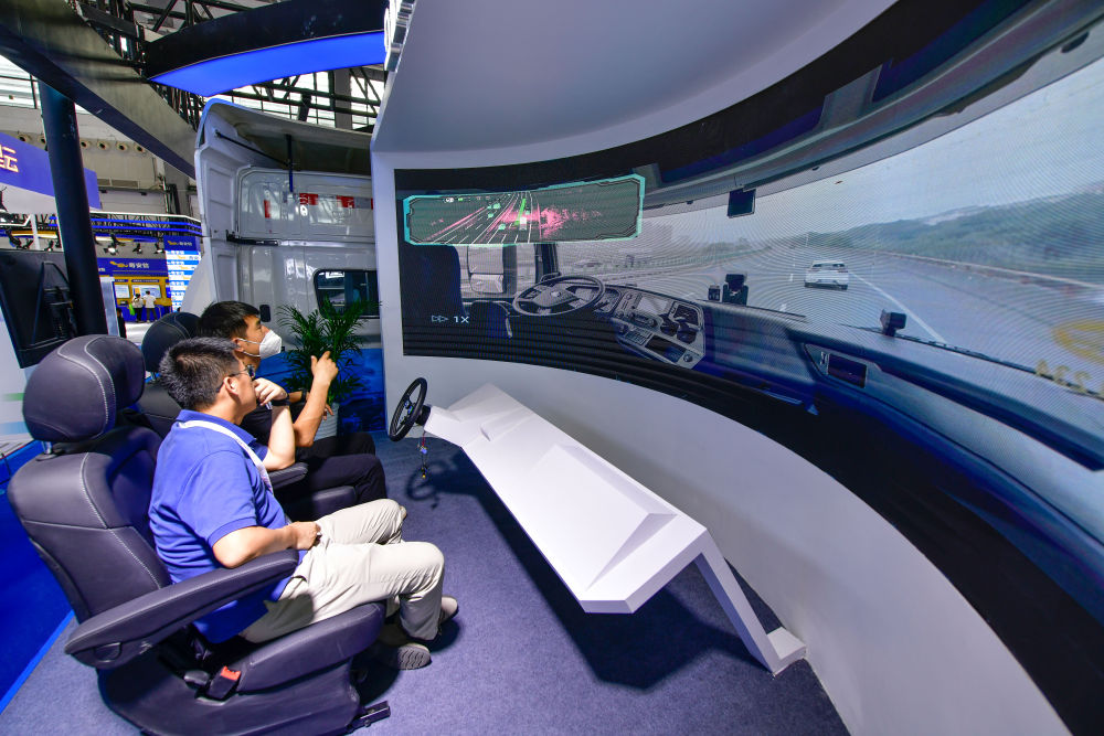 8月28日,觀展者在2024中國國際大數(shù)據(jù)產業(yè)博覽會現(xiàn)場參觀智能自動駕駛系統(tǒng)。
