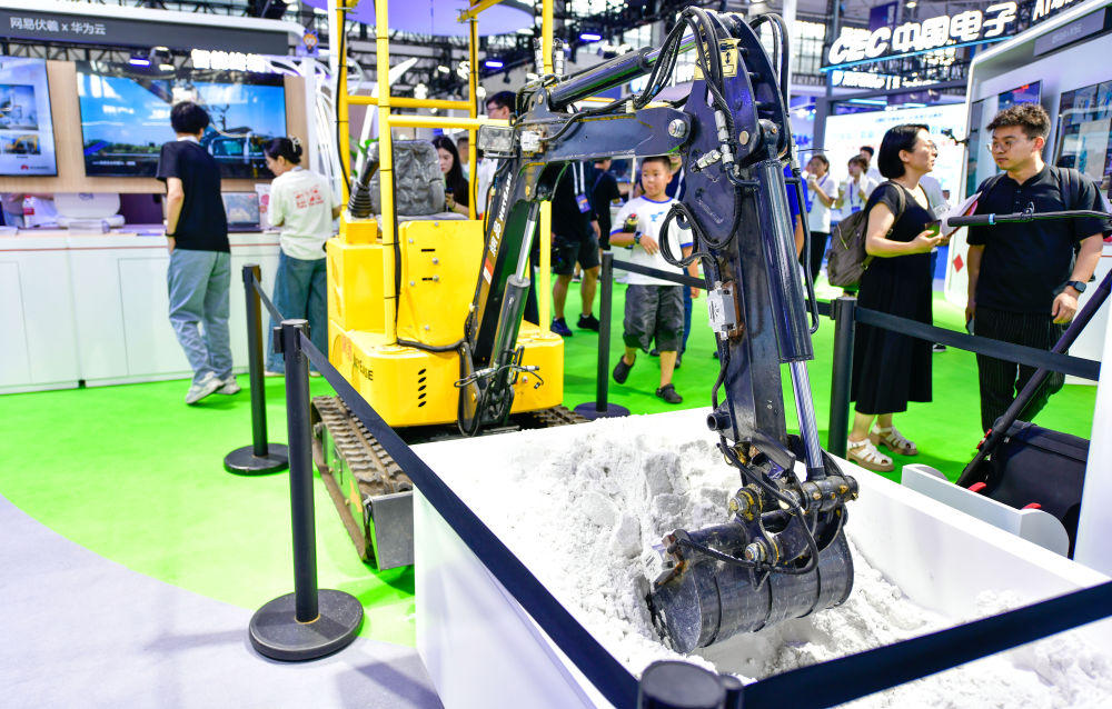 8月28日拍攝的在數(shù)博會上展出的一款智能機械設備。