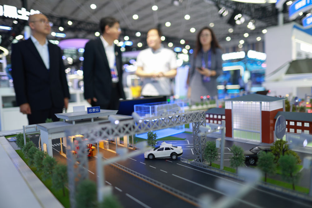 8月28日,觀展者在2024中國國際大數(shù)據(jù)產業(yè)博覽會現(xiàn)場參觀城市智能時代基礎設施模型。