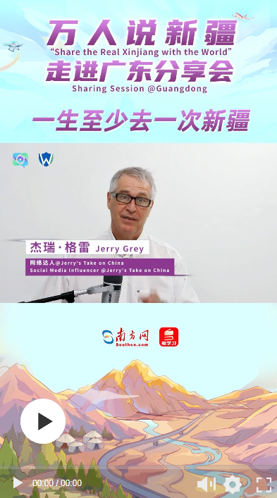 9月2日至3日,“萬人說新疆”走進廣東分享會將在廣州舉行。網絡達人杰瑞·格雷經常去新疆旅游,并有幸騎自行車穿越新疆兩次。他建議,每個人在一生中至少去一次新疆,他會再去一次,建議大家也去看看。