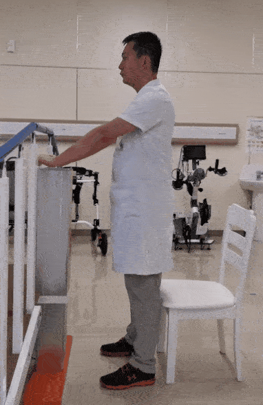 雙腳分開(kāi),雙手扶在墻面或扶手上,保證平衡。足跟緩慢抬起,停留一會(huì)兒,然后恢復(fù)至初始動(dòng)作。此為一個(gè)完整動(dòng)作。8~12次/組,做3組。