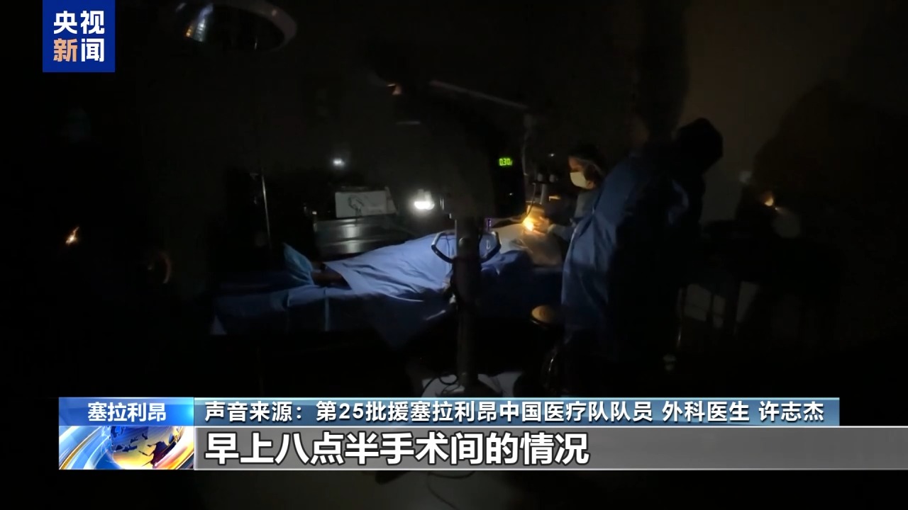 第25批援塞拉利昂中國(guó)醫(yī)療隊(duì)隊(duì)員 外科醫(yī)生 許志杰:做眼科手術(shù)第二臺(tái),(患者)還沒(méi)打麻醉,突然停電了,大家就打著手機(jī)光,用著應(yīng)急電源在做手術(shù)。