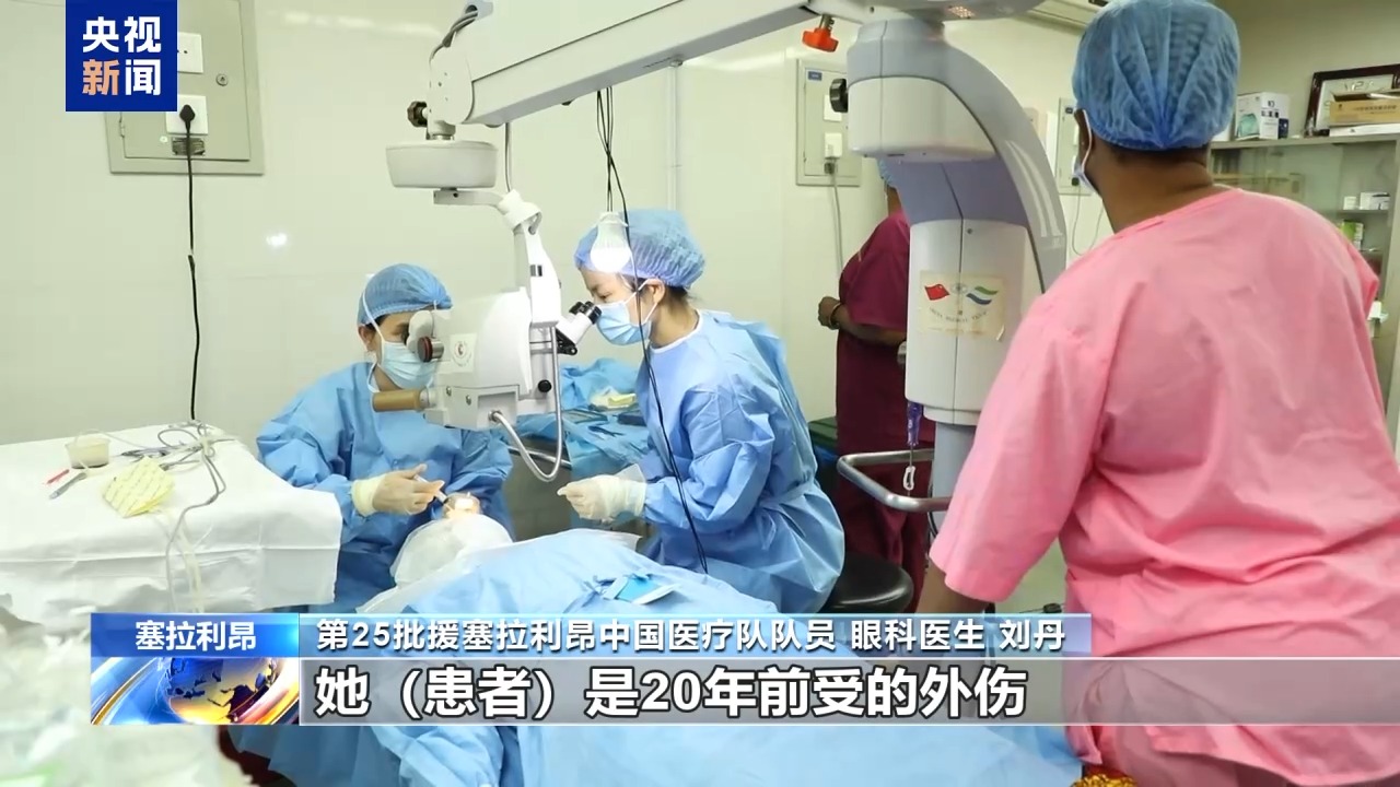 第25批援塞拉利昂中國(guó)醫(yī)療隊(duì)隊(duì)員 眼科醫(yī)生 劉丹:她(患者)是20年前受的外傷,然后角膜帶斑翳,就是虹膜粘連,很難的一個(gè)白內(nèi)障(手術(shù))。這里的白內(nèi)障都是好重的,是那種完全看不見(jiàn)的。
