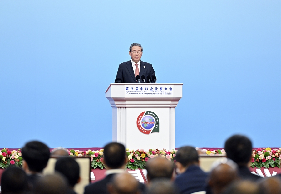 9月6日上午,國(guó)務(wù)院總理李強(qiáng)在北京國(guó)家會(huì)議中心出席第八屆中非企業(yè)家大會(huì)開(kāi)幕式并致辭。新華社記者 殷博古 攝