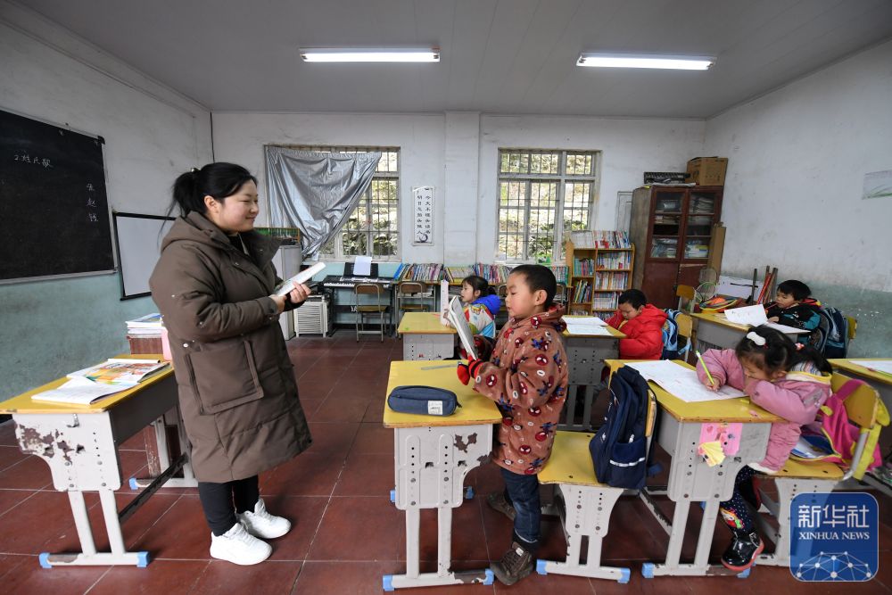 在廣西靈川縣蘭田瑤族鄉(xiāng)東良教學點,“85后”老師石夏月給學生上課(2022年2月24日攝)。