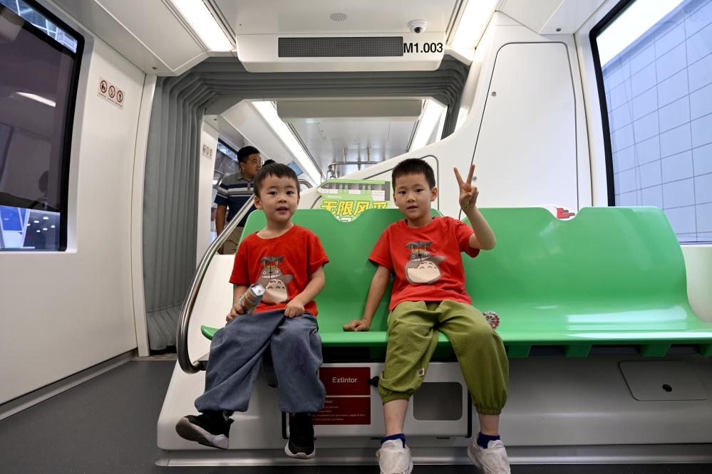 9月21日,在2024世界制造業(yè)大會上,小朋友體驗(yàn)一款跨座式單軌列車。新華社記者 黃博涵 攝
