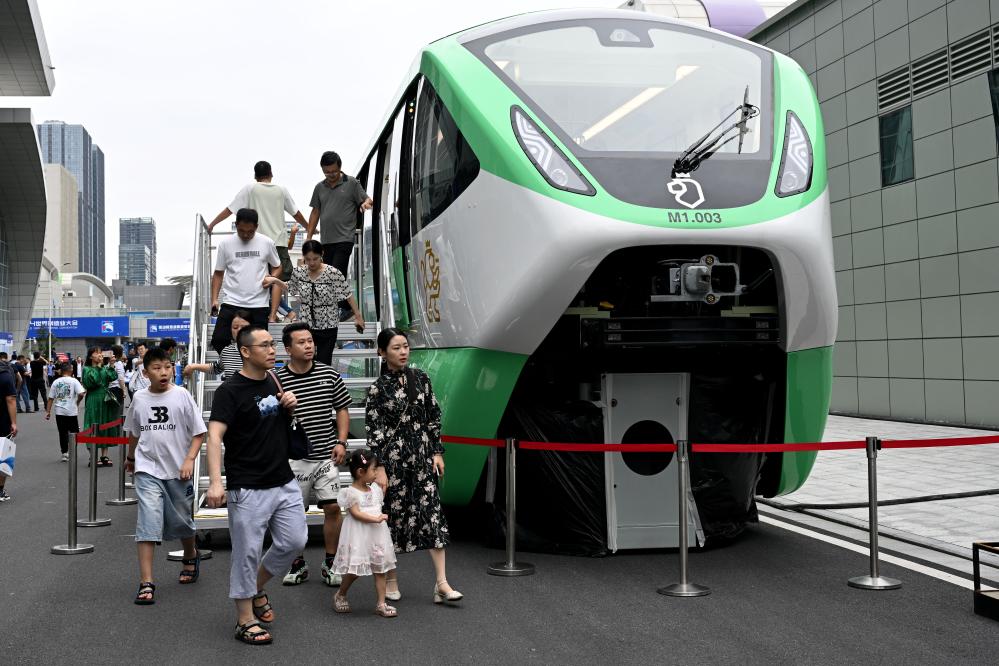9月21日,在2024世界制造業(yè)大會上,人們參觀體驗(yàn)一款跨座式單軌列車。新華社記者 黃博涵 攝