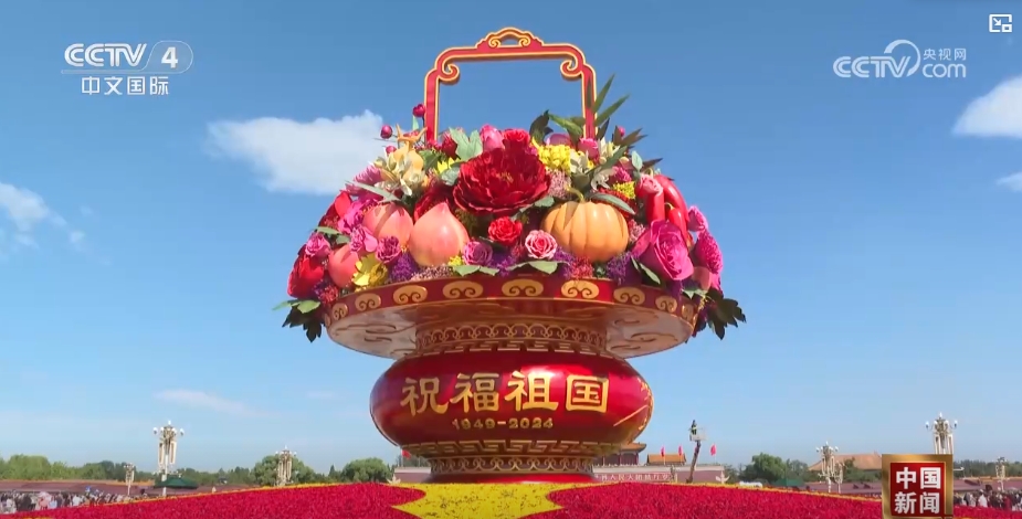 25日,北京天安門廣場(chǎng)和長(zhǎng)安街沿線等重點(diǎn)區(qū)域花卉正式亮相。天安門廣場(chǎng)中心的“祝福祖國(guó)”大型花壇,吸引了眾多游客拍照打卡。