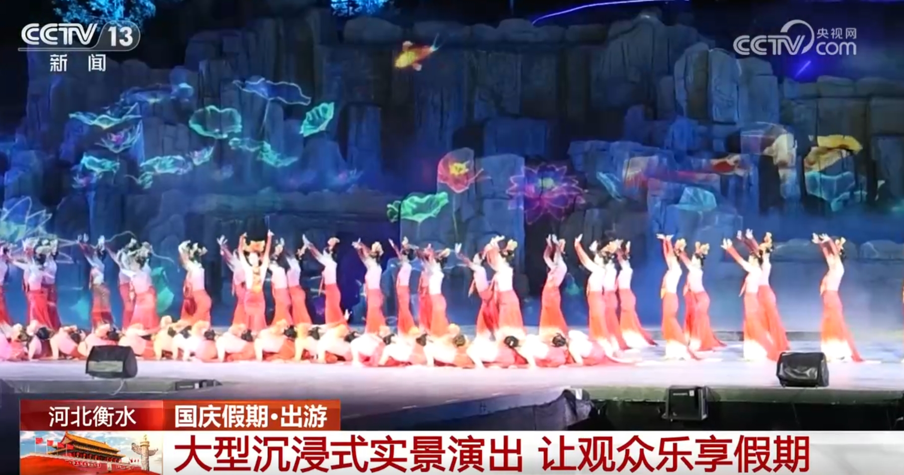 不僅白天能看演出,夜幕降臨后,在河北衡水市,大型沉浸式實(shí)景演出《大美衡水 湖韻千年》精彩上演,主舞臺(tái)演出以水為脈,通過(guò)音、舞、詩(shī)、畫(huà)巧妙融合,再加上3D投影等特效技術(shù)的靈活運(yùn)用,營(yíng)造出強(qiáng)烈的視覺(jué)效果和藝術(shù)沖擊力。