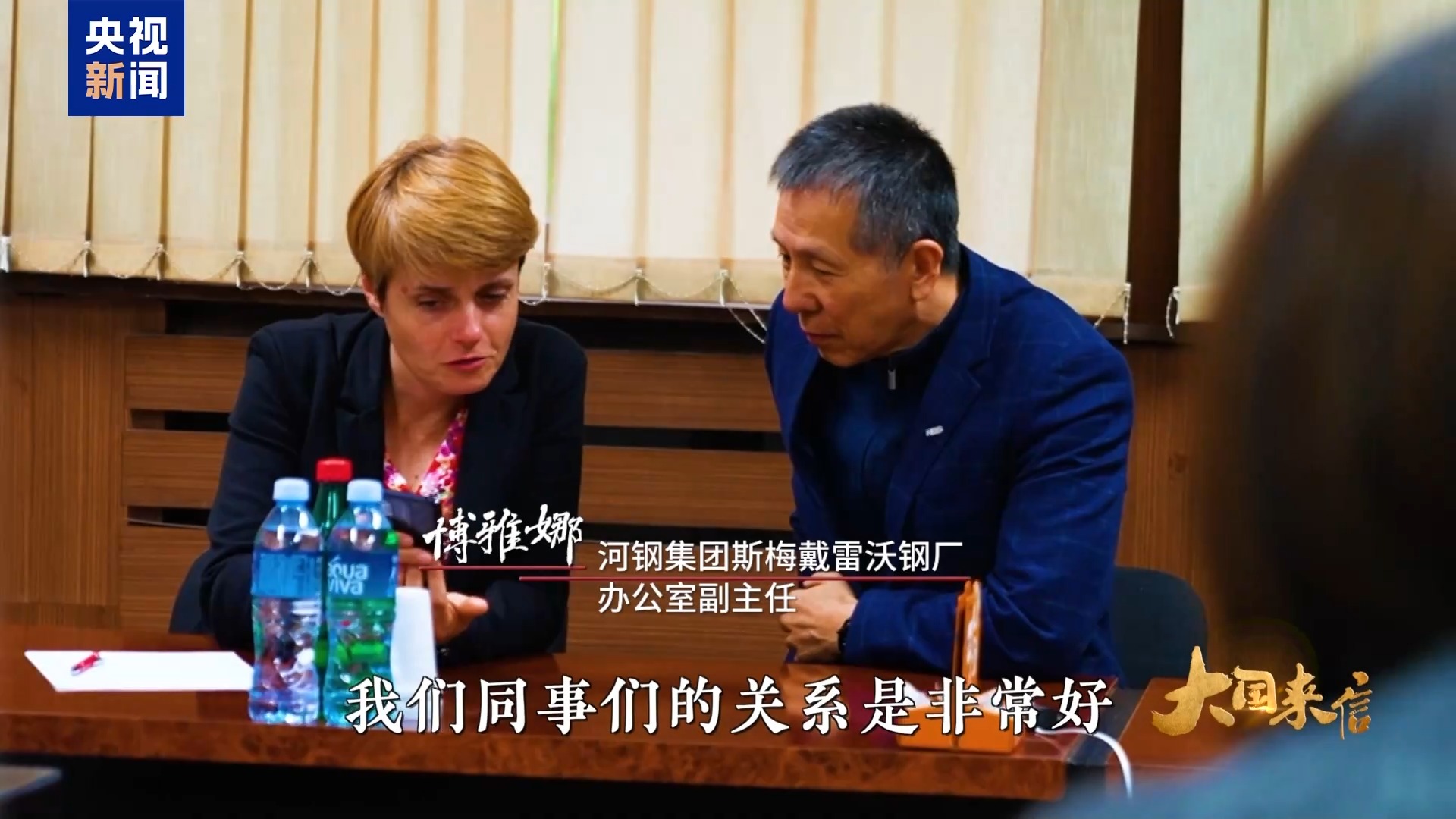 河鋼集團斯梅戴雷沃鋼廠辦公室副主任 博雅娜:我們同事們的關(guān)系是非常好。如果有啥事,我們是幫忙。他們經(jīng)常給我做餃子,他們都知道我喜歡吃。
