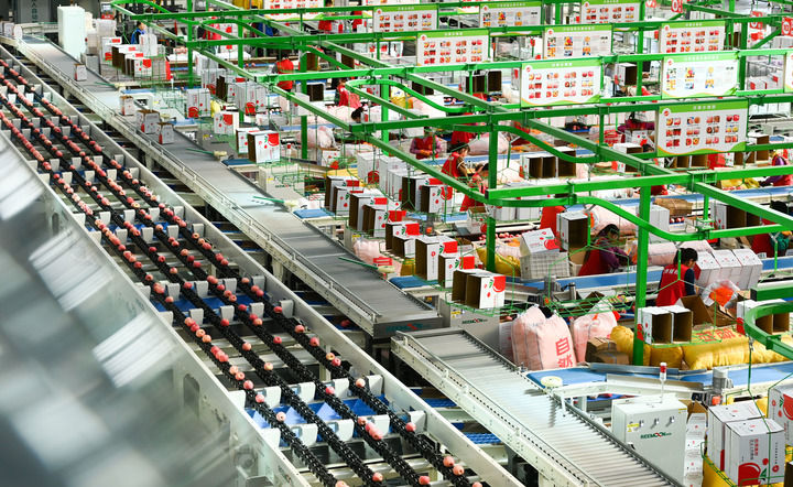 工作人員在延安市洛川縣一家果業(yè)企業(yè)打包蘋果(2023年10月20日攝)。新華社記者 鄒競(jìng)一 攝